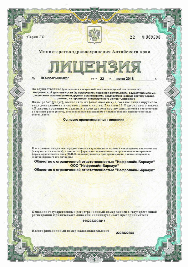 Полное наименование: Общество с ограниченной ответственностью "Нефролайн-Барнаул"