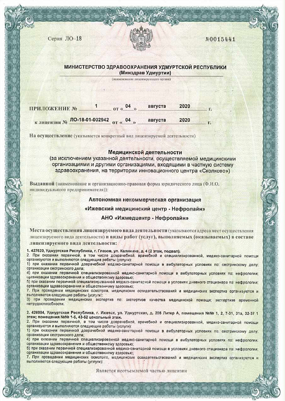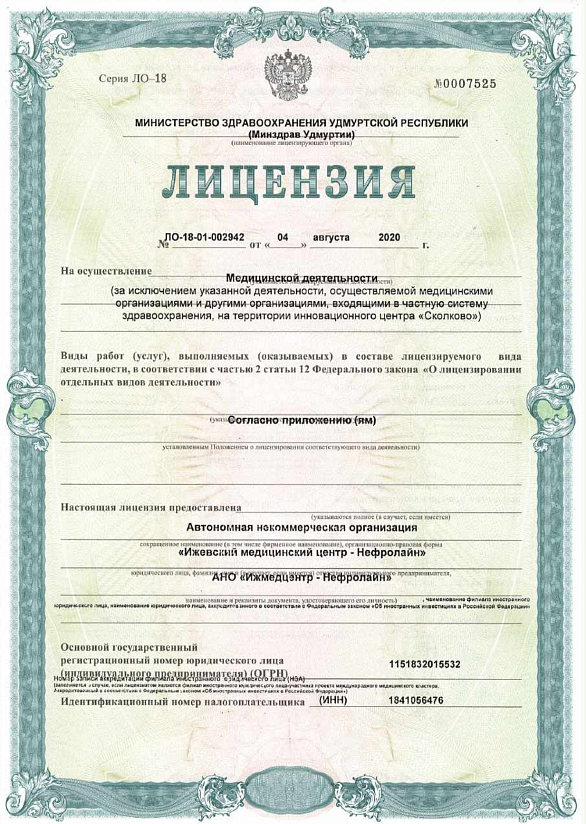 Я, посетитель веб сайта http://www.nephroline.ru (далее – Сайт), оставляя отзыв, а также заполняя любые другие формы обратной связи на Сайте, в соответствии с требованиями статьи 9 Федерального закона от 27.07.2006 № 152-ФЗ «О персональных данных», свободно, своей волей и в своем интересе даю настоящее предварительное согласие Автономная некоммерческая организация «Ижевский медицинский центр – Нефролайн», 426004, Удмуртская Республика, г. Ижевск, ул. Удмуртская, д. 205 (далее - Оператор) на обработку в порядке, установленном действующим законодательством Российской Федерации, моих персональных данных (сбор, систематизацию, накопление, хранение, обновление, изменение, использование, обезличивание, блокирование, уничтожение, распространение), в том числе, включающих: 1. имя, отчество; 2. контактный номер телефона; 3. адрес электронной почты; 4. пользовательские данные, включая: ip-адрес, сведения о местоположении пользователя; тип и версия операционной системы устройства; тип и версия интернет-браузера; тип устройства и разрешение его экрана; источник, откуда произошел переход на данный Сайт; язык операционной системы устройства и браузера; страницы и элементы Сайта, которые были использованы мной; 5. иные сведения, которые могут содержать мои персональные данные, содержащиеся в тексте моего запроса. Обработка моих персональных данных осуществляется Оператором с целью использования мной сервисов Сайта, в том числе, но, не ограничиваясь перечисленными сервисами: «Отзывы», «Написать отзыв», а также обеспечения связи Оператора со мной посредством предоставленных мной персональных данных. Обработка персональных данных осуществляется Оператором в порядке и на условиях, предусмотренных Политикой АНО «Ижевский медицинский центр - Нефролайн» в отношении обработки персональных данных, с которой я имел возможность ознакомиться. Я предоставляю Оператору право обрабатывать мои персональные данные посредством внесения их в электронную базу данных, включения в списки (реестры) и отчетные формы. Я даю Оператору право на обработку моих персональных данных, как без использования средств автоматизации, так и с их использованием. Я даю свое согласие на передачу персональных данных в электронной форме по открытым каналам связи. Настоящее предварительное согласие действует с момента заполнения мной выше указанных форм сервисов на Сайте и действует до достижения Оператором заявленных в настоящем предварительном согласии целей обработки моих персональных данных. Я оставляю за собой право отозвать свое предварительное согласие посредством составления соответствующего письменного документа, который может быть направлен мной в адрес Оператора по почте заказным письмом с уведомлением о вручении либо вручен лично представителю Оператора. Положения настоящего предварительного согласия на обработку персональных данных мною прочитаны и поняты.